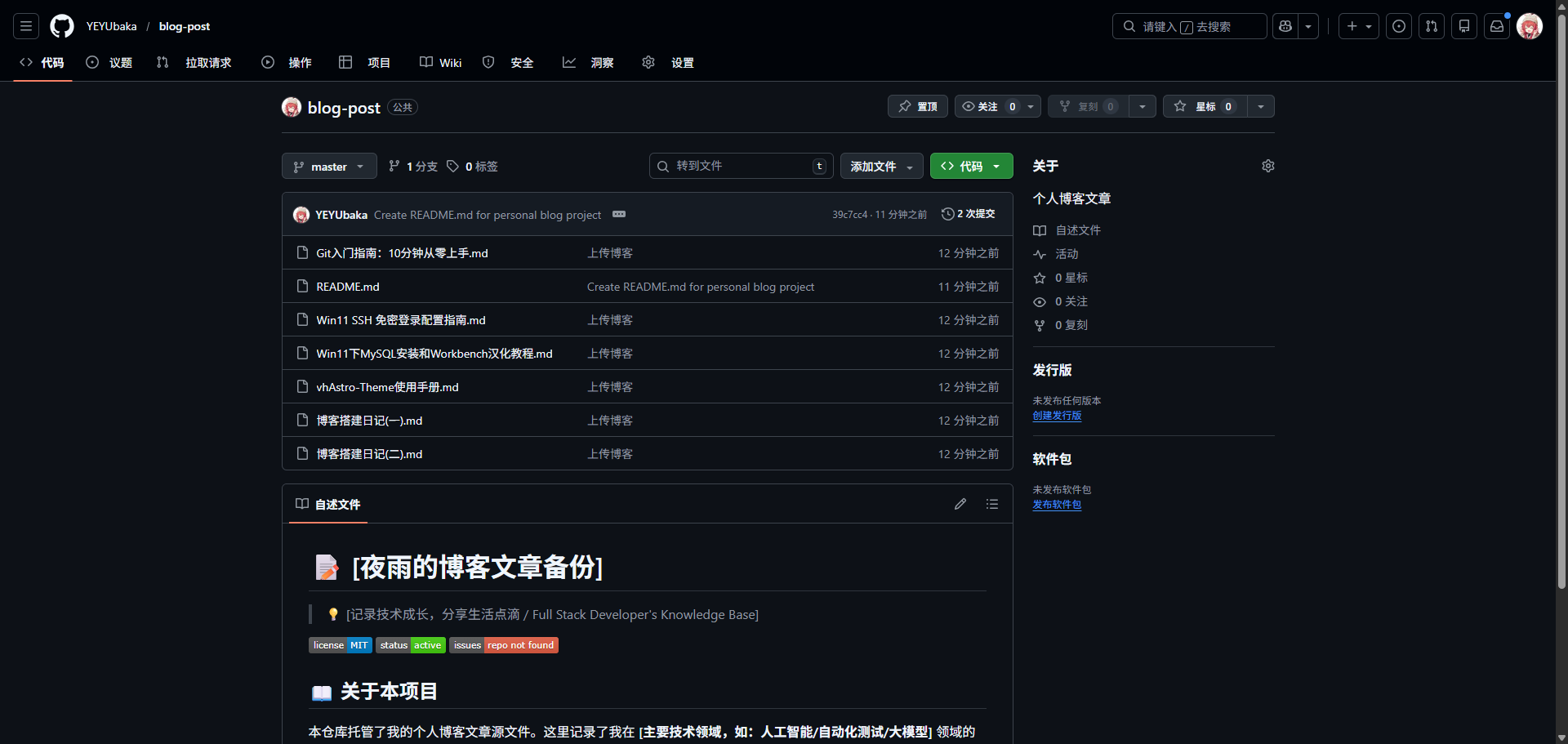 git clone https://github.com/用户名/项目名.git在博客文章文件夹内右键Open Git Bash here 执行git init后会在文件夹内生成一个.git隐藏文件夹 千万不能删这个文件夹